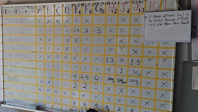 I was genuinely excited to finally work with animals. Our first task was to prepare their feed. A chart on the wall showed how much of each ingredient to mix for every pen. The portions differed depending on the pigs’ stage of growth, so we followed the chart carefully. Once the feed was ready, we poured it into the eating area of each pen.